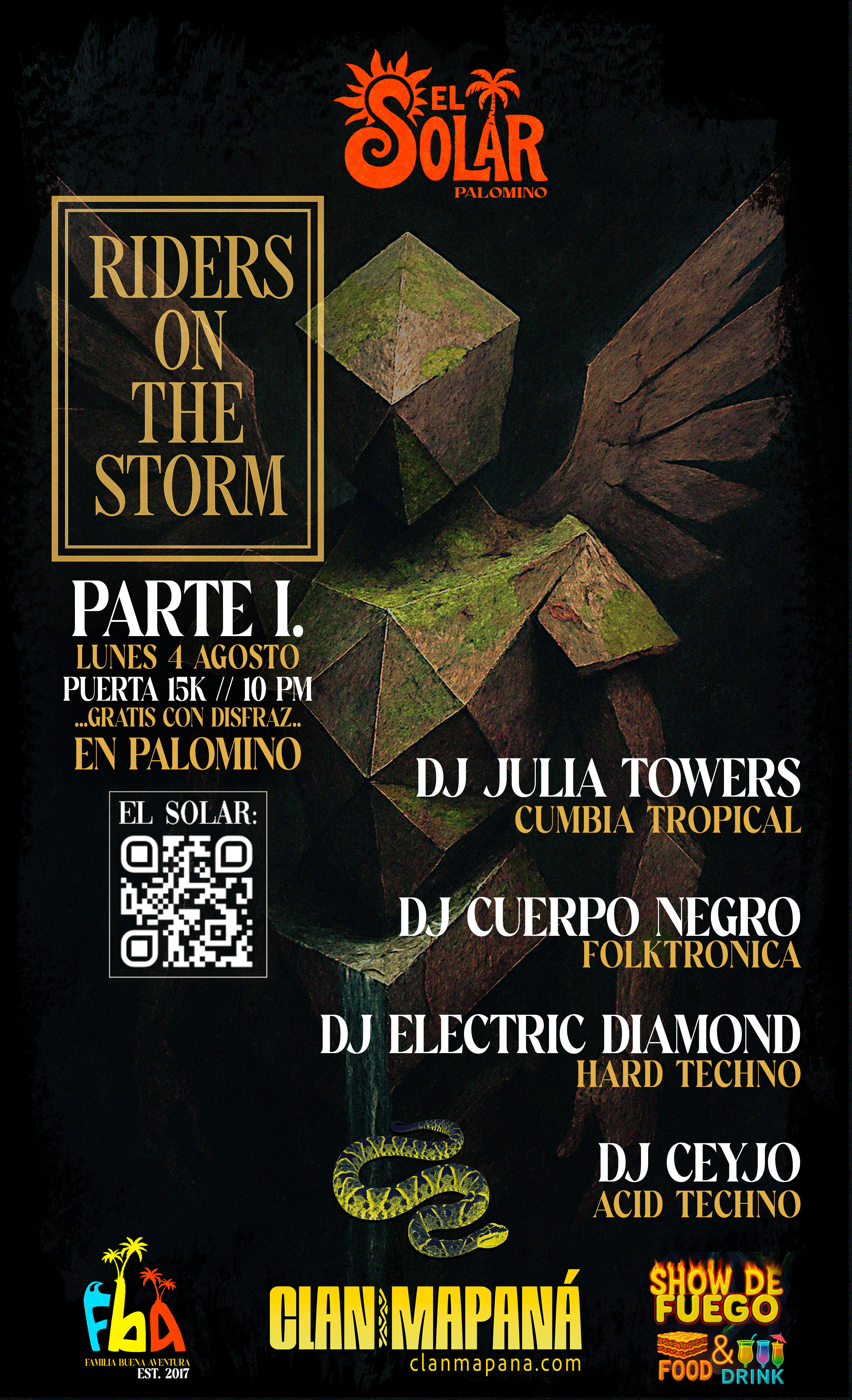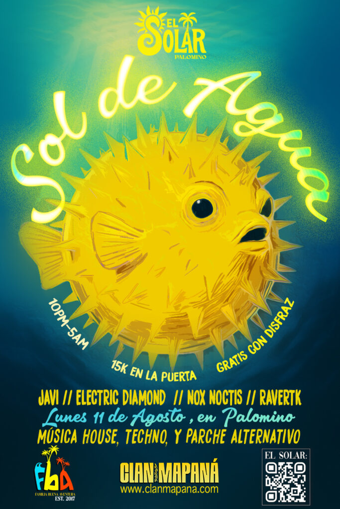 A la iniciativa de los fundadores de Clan Mapaná (Roberto, Jhoann, Teo); un nuevo lugar de encuentros artísticos y culturales, nació en Palomino, un pueblo costero de la costa caribe de Colombia. EL SOLAR (CR 15 CL 3) está empezando con un ciclo de toques de musica electrónica con DJ’s de toda Colombia y de todo el planeta Tierra, y con el fin de financiar y desarrollar un lugar adecuado para recibir artistas plasticas, performers, musicxs, DJ’s chefs… en el marco de los contenidos audiovisuales